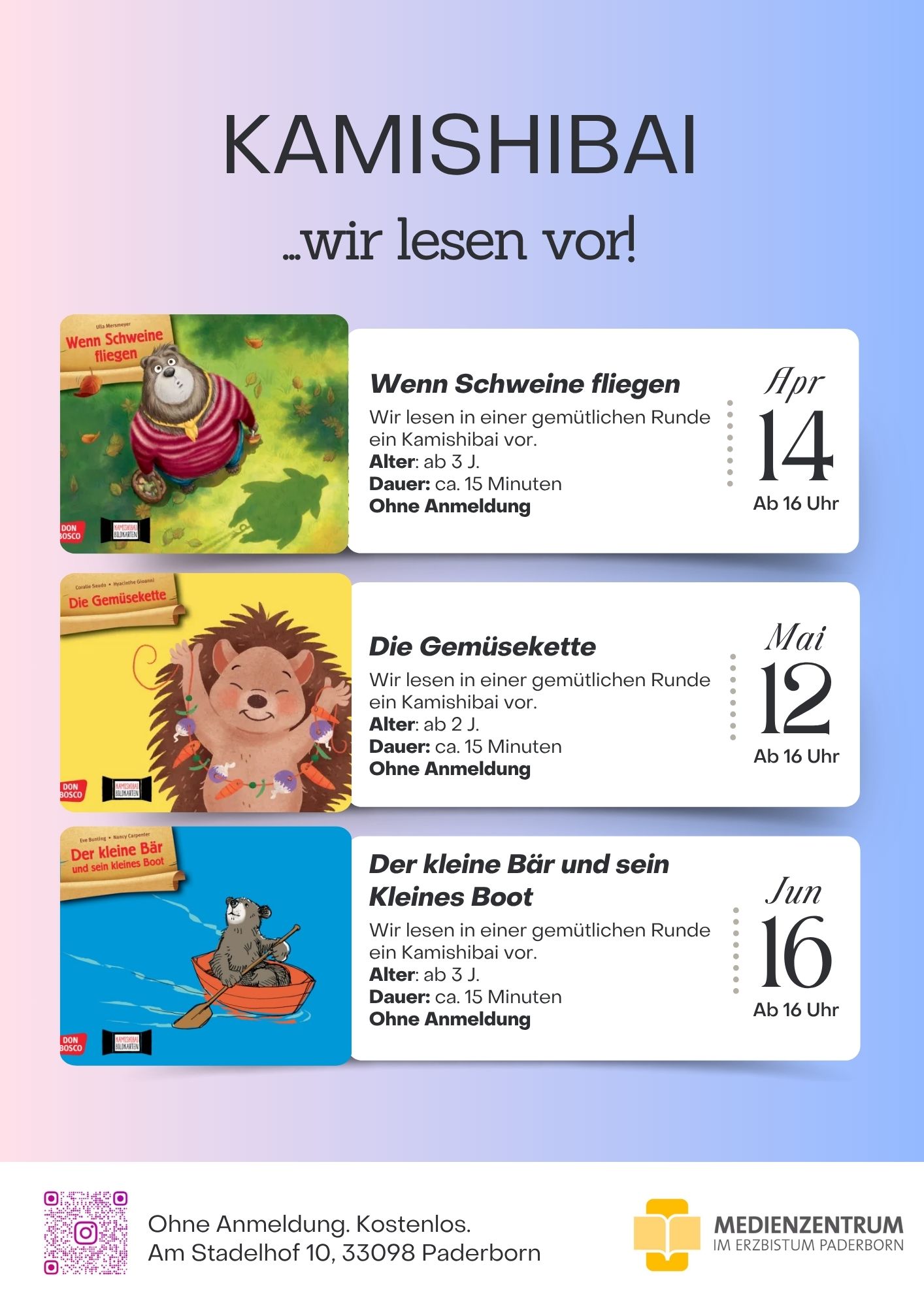 Alle Termine der Kamishibai-Veranstaltungen bis Juni 2026 im Überblick, praktischerweise mit einem PDF zum Ausdruck für zu Hause.